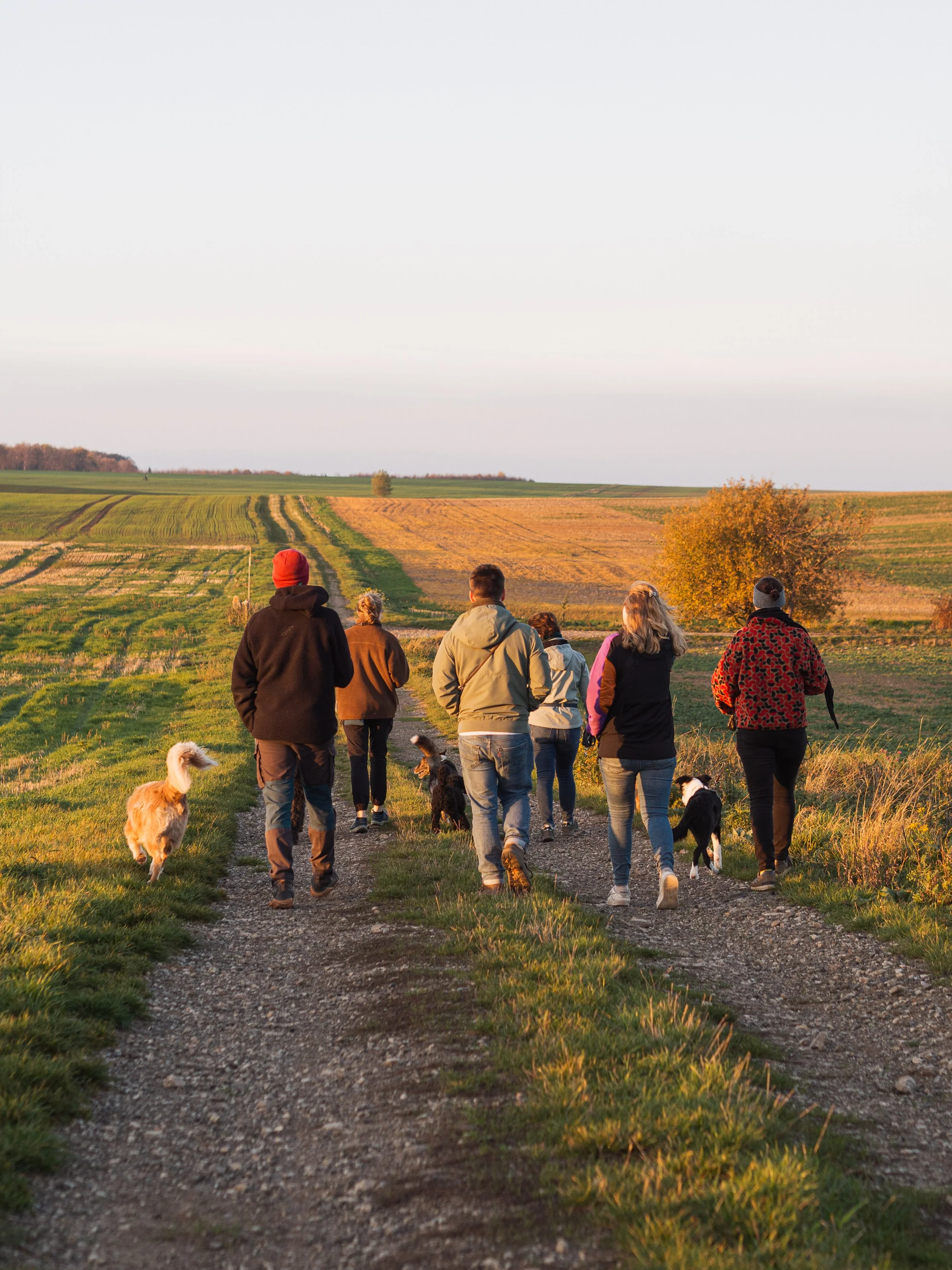 Ein entspannter Spaziergang mit anderen Mensch-Hund-Teams, bei dem sowohl an der Leine, als auch im Freilauf auf ein harmonisches Miteinander geachtet wird. Das Ziel ist eine schöne Zeit und viele positive Lernerfahrungen für alle Mensch-Hund-Teams.